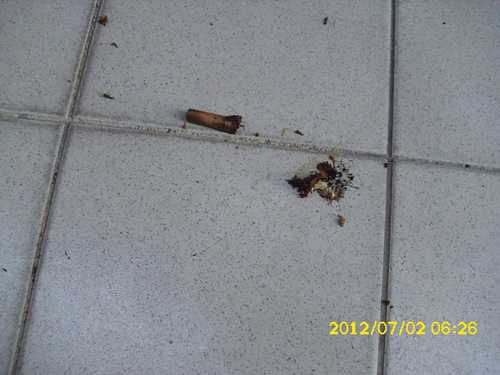 對~~大爛人一個,我住WISH歐洲,樓上也不知住了哪個沒公德心的大爛人,多次丟煙蒂,管委會也有在佈告欄貼公告,不知是瞎了眼還是怎樣...一點作用都沒有,真想砍了他的手{:4_214:}
