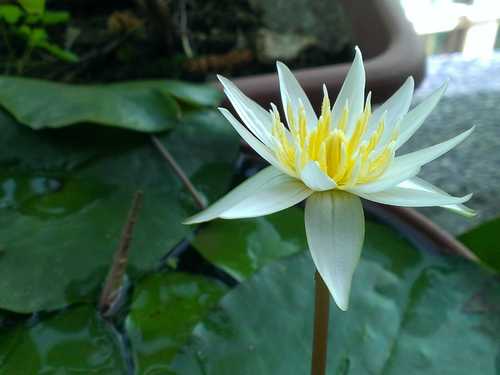 開白花,他的沈水葉有四種不同的色斑所以叫做四色蓮,很多人把他當作水草在養。