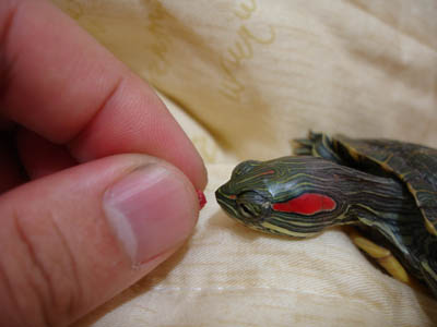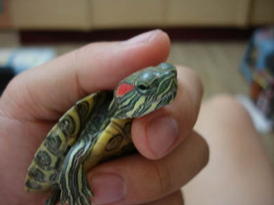 3. 我把他抓起來的樣子正面喔,千萬不要把手指放到他大顎中間喔,夾到很痛喔