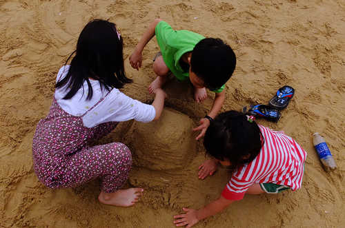 不知道Eason怎會想出這樣的遊戲 ;P -- 下龍灣的斗笠遊戲