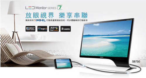 Samsung SB750 擁有全球第一個將 MHL 行動高畫質連結與顯示器結合的技術,只需一線,便能輕鬆連接行動裝置與顯示器,隨時放大你的手機、平板螢幕;無論享受影音大畫面震撼,或是於會議上分享行動商務資訊,Samsung SB750 都是你的最佳幫手。 獨家 ToC 水晶透色技術,打造宛如藝術品般的絕美外觀;5W 立體雙聲道喇叭,給你豐富的聽覺饗宴。若你正在找尋一台兼具美型與高規格的顯示器,那麼 Samsung SB750 便是你萬中選一的選擇。