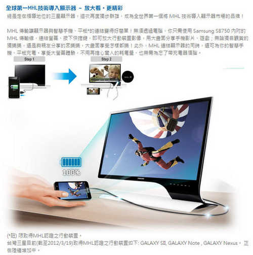 全球第一個擁有MHL高畫質連結的顯示器, 隨時放大你的行動裝置螢幕, 樂趣生活 放大看 ‧ 更精彩。