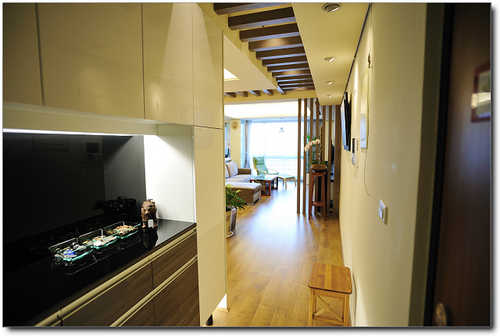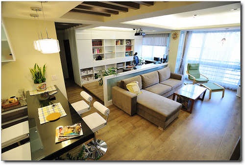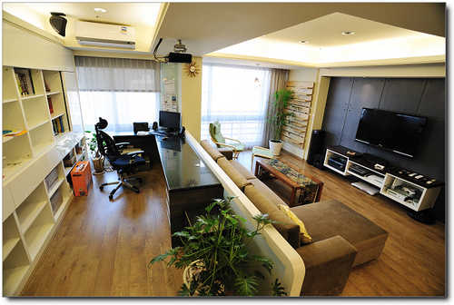 小弟新家在萬寶隆社區,是三房格局,但是把第三房和客廳做成開放式空間,