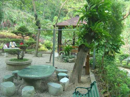 由於經費有限,熱心助人又廣結善緣的李健德在許多好友的協助下,以各種資源回收的廢棄物打造了這座長春園。例如六角亭的柱子是早期的木製電線桿,質樸又不失風情;三義木雕的木桌更是回收後重新上漆,煥然一新。