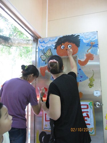 ㄧ起到學校幫忙協助故事屋門面的繪製
