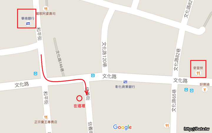 走和平街過去, 到文化路時左轉後, 右手邊第一個巷子再右轉進去你就可看到了, 就在右手邊前面幾家。那條巷子早上是市場, 我不確定這條巷子是不是叫信義街, 走到底就是三峽的新市場。