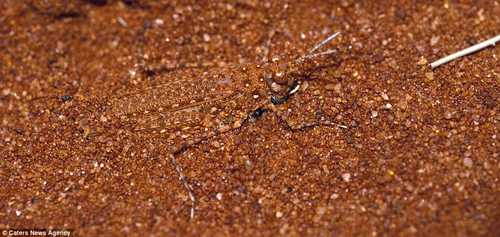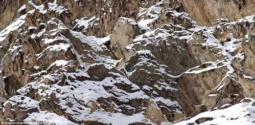 將照片均分成左右兩半,小雪豹就在左半部照片的正中央。