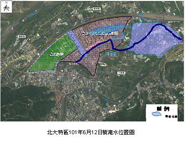 經本局初步分析結果,該次降雨於8小時內降下約430公釐雨量,其中好幾個小時降雨量已超過設施標準(50mm/hr),因排水宣洩不及而導致積淹水發生。總結而言,北大特區積淹水原因略有下列幾點:
