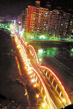 ▲燈光熠閃的三峽拱橋,映照著悠悠流水歲月。(本報資料照片)