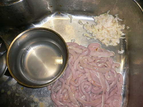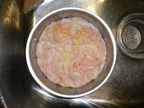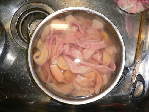 先把腸子外旁邊的腸油剪一些掉(因為我不敢吃太肥油的)