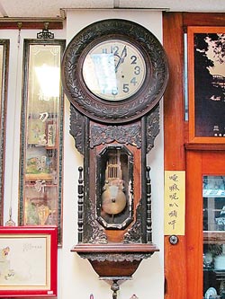 陳老闆收藏的物品還有母親嫁妝八十多年的精工擺鐘、古錢、補釘磁盤等,連藥櫃子、桌子也都有百年歷史,走進藥房,雙眼所見都是寶。