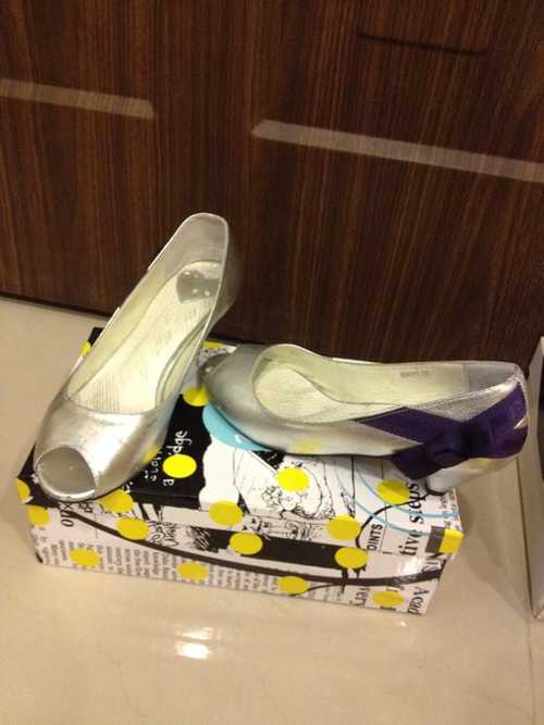 5.6.MISS銀色緞帶魚口低跟鞋(38號) 售200元