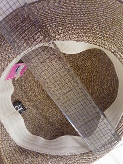 尺寸: 簡單量了一下,內緣較常直徑約22cm ; 較短直徑約17.5cm. 是柔軟的質料,所以可依頭形些微改變.