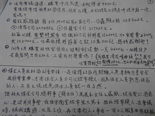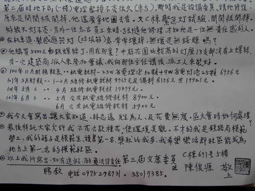 另外,感應燈的部份,一直有住戶來反應安裝,這在區全會上也被討論過,