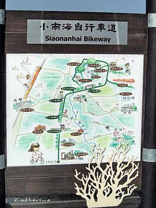 由後壁火車站正前方172甲縣道往白河方向行駛,約莫兩公里處即可看到『小南海自行車道』的起點