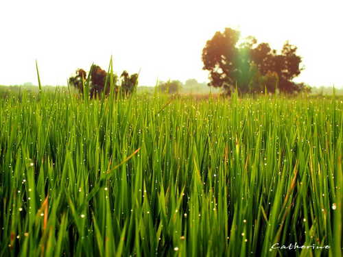 稻葉上的晨露在初陽的照耀下閃閃動人