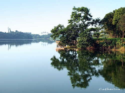 湖面寬廣,四周茂盛的林木環繞,生態豐富,是十分寧靜漂亮的埤塘