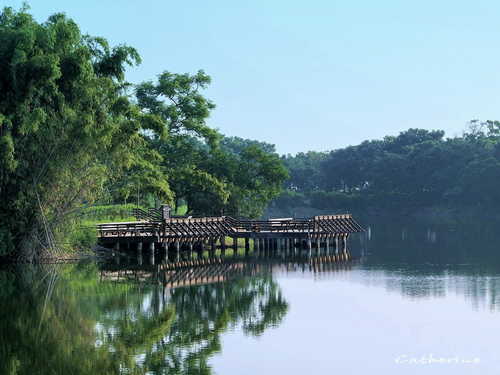 通過吊橋即進入小南海環湖步道