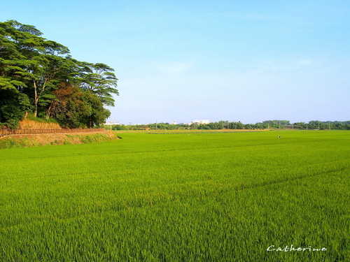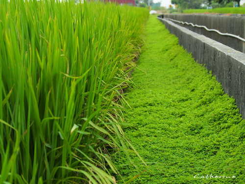 田埂上長滿綠絨絨的植披,像舖蓋一層輕柔的地毯,不禁令人驚豔大自然的奇妙