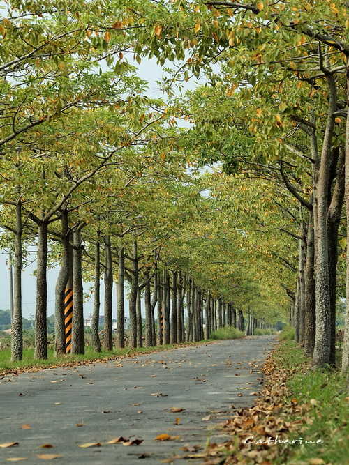 在三四月份木棉花開的季節是一條火紅車道,美得讓人摒息,現在是落葉季節也別有一番風情