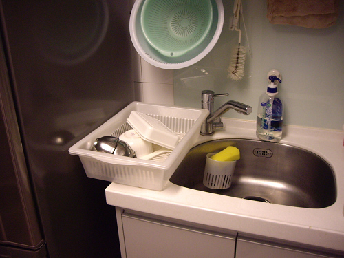 但是有客官一定會反應,那有水積在那一邊,不就立即要處理。不然又沾到洗好的東西上了!