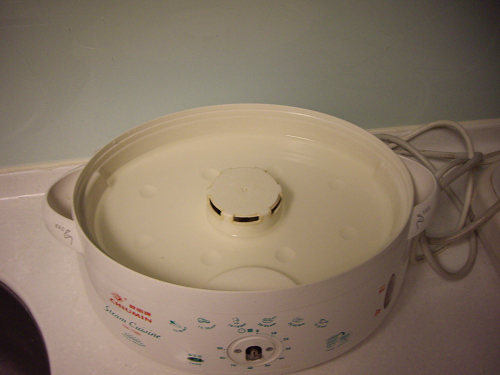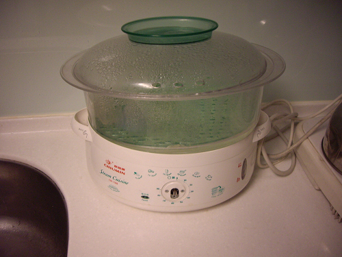 再接下來,介紹我家的蒸爐,你看連開關旋鈕都掉了,就知道其年代也滿長久的了!這一台是我家老大生的時候,要買蒸奶瓶用的。一般大家都買專用的蒸奶瓶的,只是那未來就不知做什麼了,而一般蒸東西,就會使用大同電鍋來蒸,而這一台有什麼差別呢?