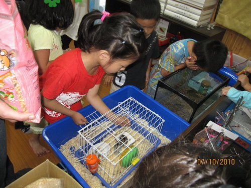 兩隻北港附幼贈送的三線鼠→有紅斑紋的叫『嫦娥』、另外ㄧ隻叫『小熊』,不是都是男生嗎?
