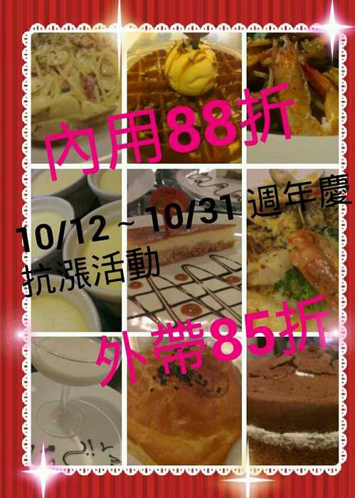 大家晚安,睡前要跟你們分享個好消息喔!米嵐週年慶抗漲活動10/12~10/31止,內用88折,外帶85折。記得要把好康的活動分享給你的朋友。02-2671-1863預約訂位還有招待前菜呦!。(此優惠不得與其它優惠併用)