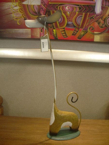 很抱歉!目前店裡並沒有木頭製的小狗.有另一款鍛鐵製如下圖