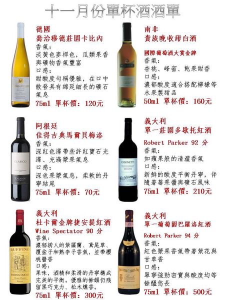 十一月份的單杯酒單搶鮮出爐囉~~{:4_153:}