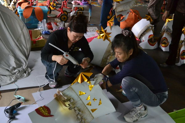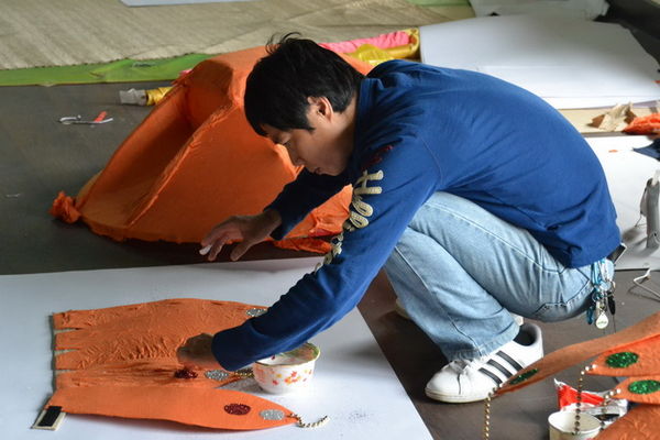 在朋友的引薦之下,幾位才剛忙完淡水嘉年華的藝術家被我說動願意來三峽駐村成立『創意踩街工作坊』。11/8舉辦的首場說明會共來了五、六個團體。絕大部分的居民,從完全不了解什麼是嘉年華? 我要做什麼? 到聽完說明會後決定開始投入後的欲罷不能,我看見大家被掩埋已久的創作熱情及天馬行空的想像力再度被引燃;不分男女老少,大家每天在工作坊”玩”得不亦樂乎。