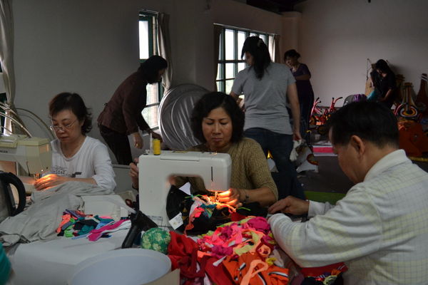 “里長,我們要車大量的布,趕快多找幾位會用縫紉機的媽媽來幫我們….”