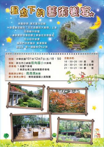 卡蘿媽咪 發表於 2012-12-10 20:50 全校動員的表演...享受了一個很不一樣的夜晚 插角星空下的藝術饗宴之武術篇 http://www.youtube.com/watch? ...