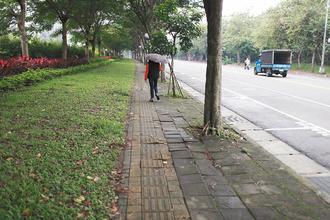 學府路的人行道因樹根生長隆起、路磚破損,學生及居民行經時容易跌倒發生危險。