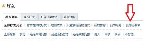 點選上方工具列的 "好友" , 在點選 我的黑名單(如下圖)