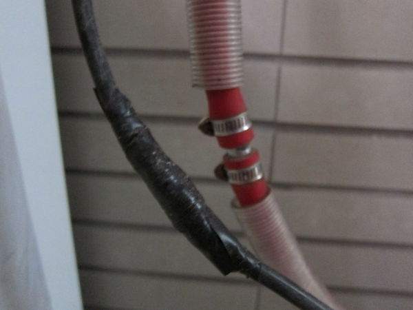 舊廚具拆除時 工人直接剪斷電源線 出水管 入水管 {:1_759:}