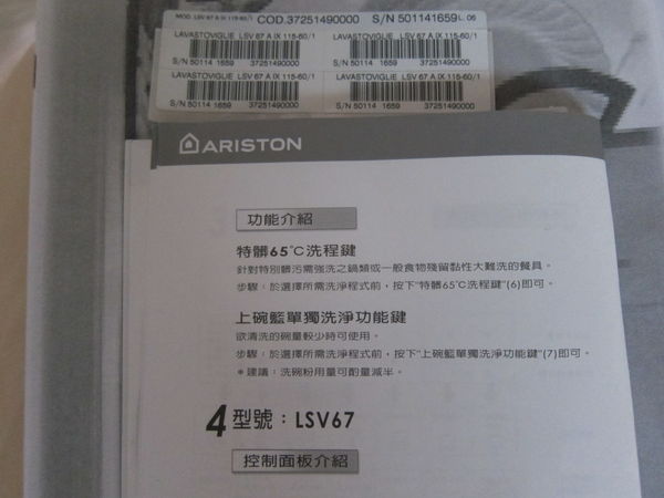 阿里斯頓 半崁式不銹鋼控制面板洗碗機 LSV67