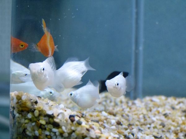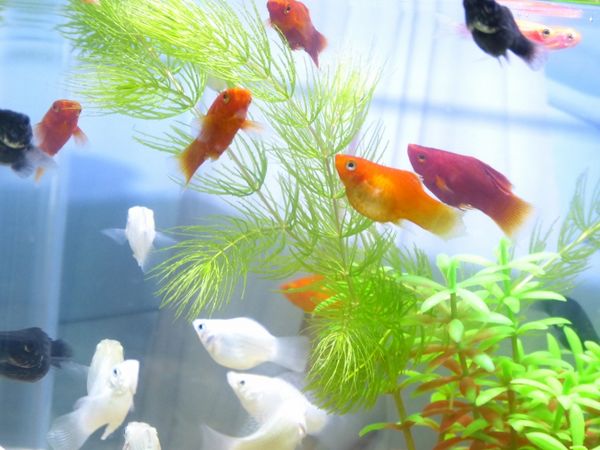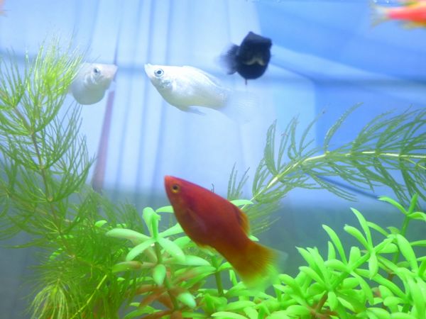 最近我買了15隻小水球魚,紅色五隻.白色五隻.黑色五隻,乾淨俐落真的還滿漂亮的,只是第一次養這種魚,