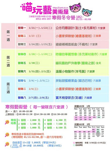 喵玩藝美術屋寒假冬令營~黏土、繪畫、蝶古巴特、不織布..