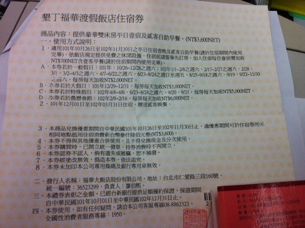 朋友及同事都幫我買....買太多啦....到3月底以前去加贈2客晚餐喔....很划算低...平常光是住宿四五千塊跑不掉哩....