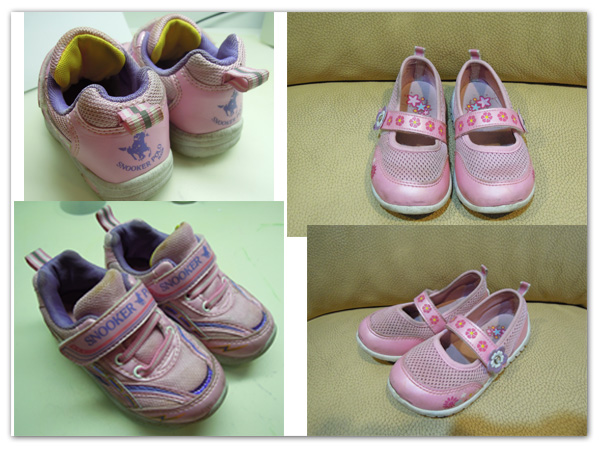 2. 二手粉色鞋鞋兩雙,左邊:17cm 右邊:26號(16公分),兩雙100元!