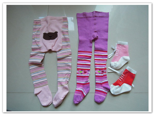 3.紫條紋褲襪:腰寬19公分,長約42公分(量到腳後跟),底長約10公分—穿過一次!50元!