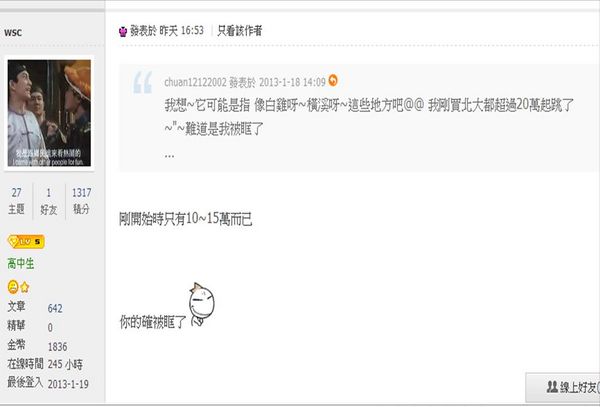 現在在北大買超過20W/P就是盤子, 就是被誆?! 因為先前入手的才10~15W