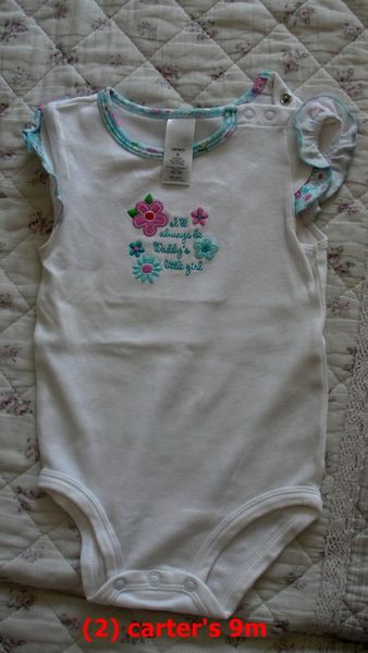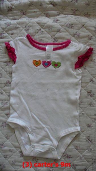 (2)(3) carter's 9m包屁衣,兩件共50元。紅色那件因為中間有被女兒不小心用原子筆畫到,所以直接兩件一起賣只要50元