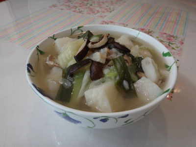 2.半條大蘿蔔+2碗水(因蘿蔔是菜園自種的,不知幾斤重,約市場一般看到的大蘿蔔)