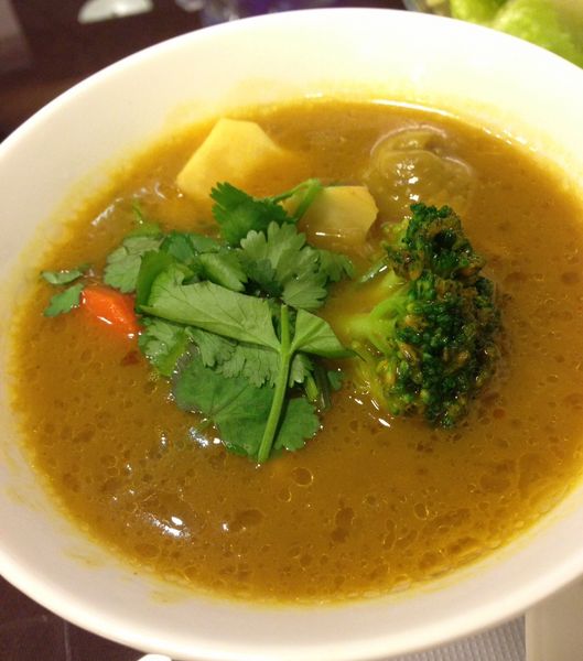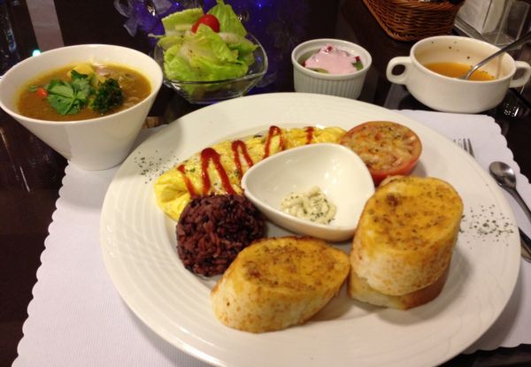 那天去吃早午餐覺得還OK!餐前沙拉醬汁微酸,很開胃!主餐我點的是紅咖哩,咖哩味道很夠很適合下飯,但因為我點的是早午餐所以~~~好像跟我點的brunch有點不搭!我覺得紫米飯可以換成另一種麵包,這樣就可以沾著吃,不然麵包和紫米飯份量較少結果吃完時咖哩還剩1/3,很可惜!副餐還有青江菜和魯冬瓜這兩樣在brunch的餐點裡出現也有點怪,我建議可以改成火腿或培根!點心的千層蛋糕不OK,口感不好,蛋皮部分不夠綿軟,有點像吃粿的感覺!我點的飲料是伯爵奶茶~茶味濃厚不錯喝!老公點的是拿鐵咖啡有點糟,咖啡豆品質不太好感覺浪費了那台貴鬆鬆的咖啡機!好像看到有人說排餐比較好吃,有機會再去吃吃看!