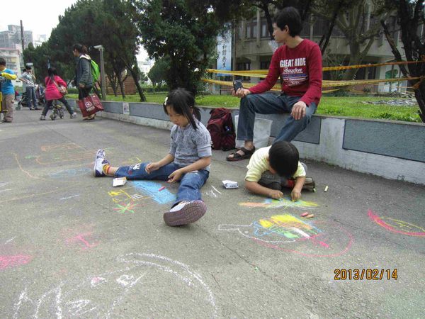 歡迎小大朋友來園區柏油地板盡情塗鴉彩繪,於活動開館時間至服務台憑證換取粉筆盒。