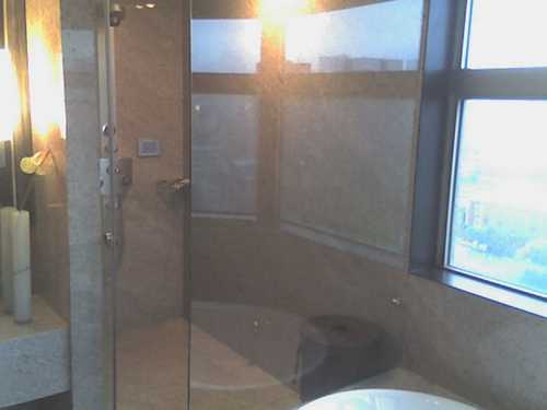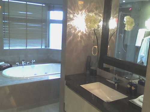 但是浴缸旁的落地窗要再低一點才看得到風景吧...