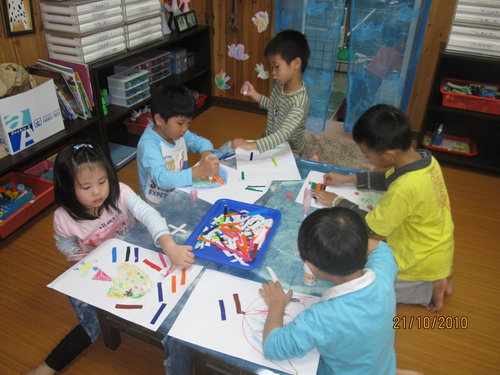 首先一定要讓小朋友知道班上的材料及工具放置處及使用的安全性宣導