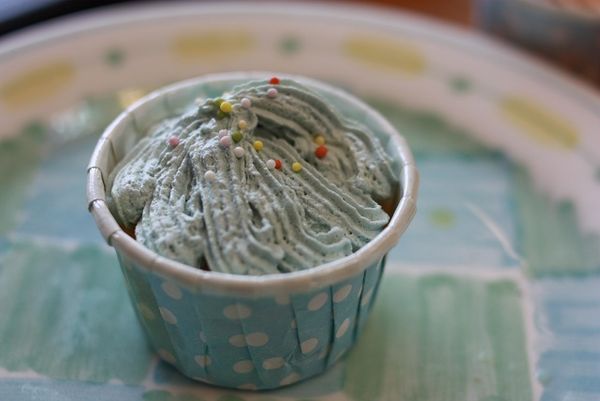 將剩餘的鮮奶油做成杯子蛋糕上的裝飾